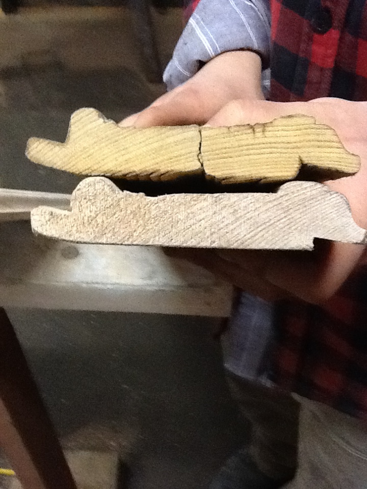 We needed a few additional feet of moldings to match the original window casings. It is not cost effective to have a shaper cutter made so instead we copy the original design using table saws, routers, shaped chisels, sand paper and elbow grease. Usually we make our copies in cedar or pine, wood that is soft and easily shaped.