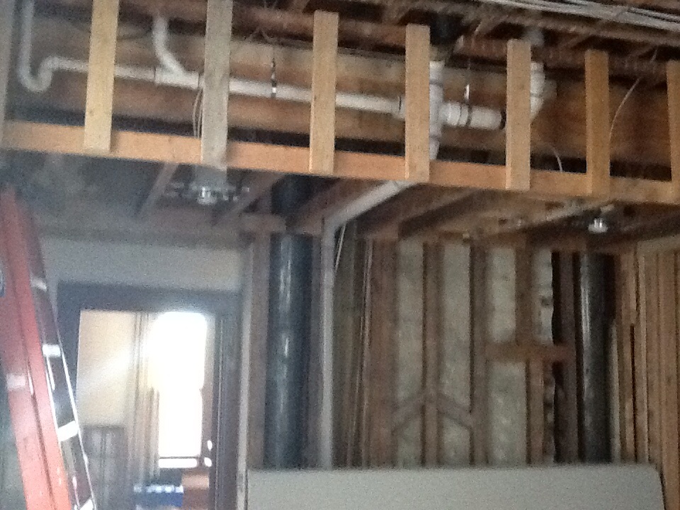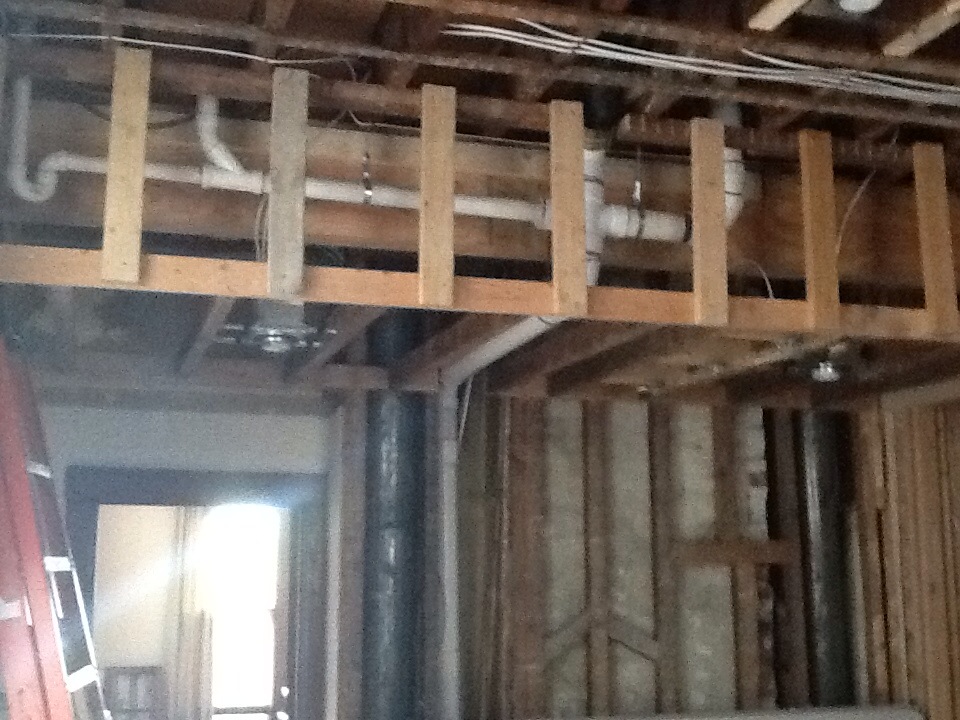 We are renovating a kitchen which involved the removal of a structural wall. Pictured below is a new structural beam surrounded by new drain lines and new electrical work. Not a beautiful thing to look at necessarily, but pretty involved engineering and craftsmanship. Thank you to the designer, architect, engineer for the support and direction, and to our carpenters and plumbing and electrical subcontractors for putting together this puzzle.